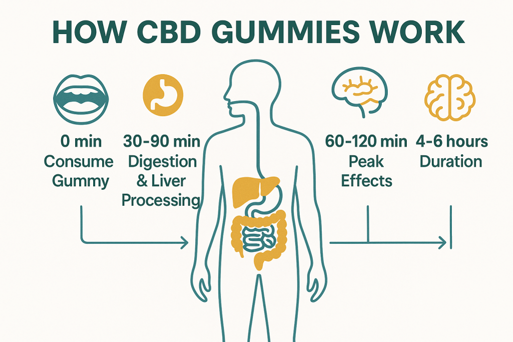 Effects typically last 4-6 hours, making gummies ideal for sustained support during work days or for evening relaxation routines. Unlike vaping CBD which peaks quickly and fades within 2-3 hours, gummies provide controlled release maintaining consistent CBD levels.